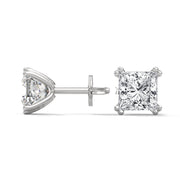 Princess Cut Solitaire Diamond 14K Gold Stud Earrings| 2-6ctw - 14K White Gold / 2 Ctw / F-VS1
