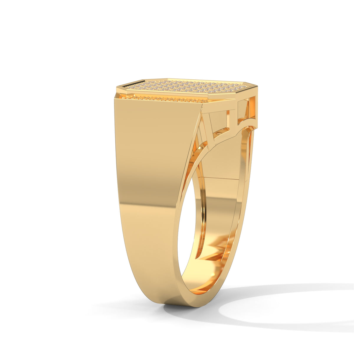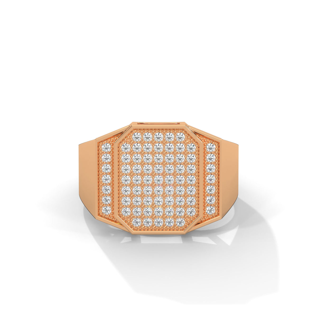 Command attention with the Prestige Octagon Men's Ring, a masterpiece crafted for those who appreciate luxury with a contemporary edge. This striking octagonal design is adorned with 73 round lab-grown diamonds, totaling 0.73 CTW, meticulously set to create a dazzling display of brilliance.